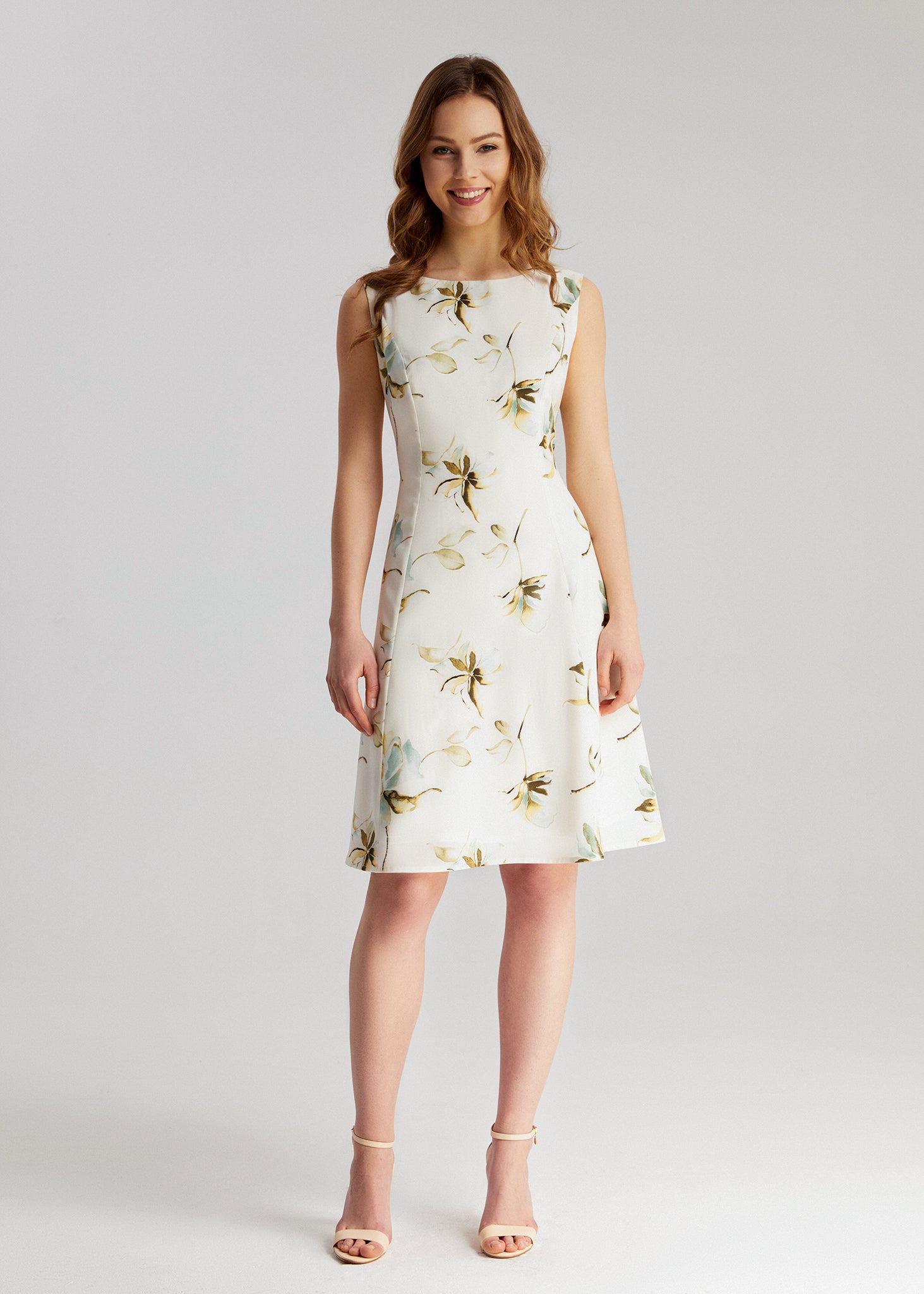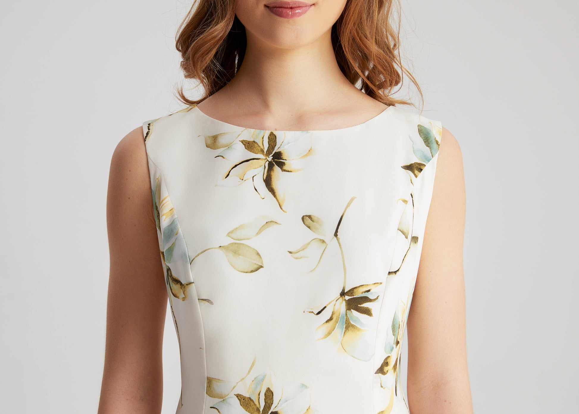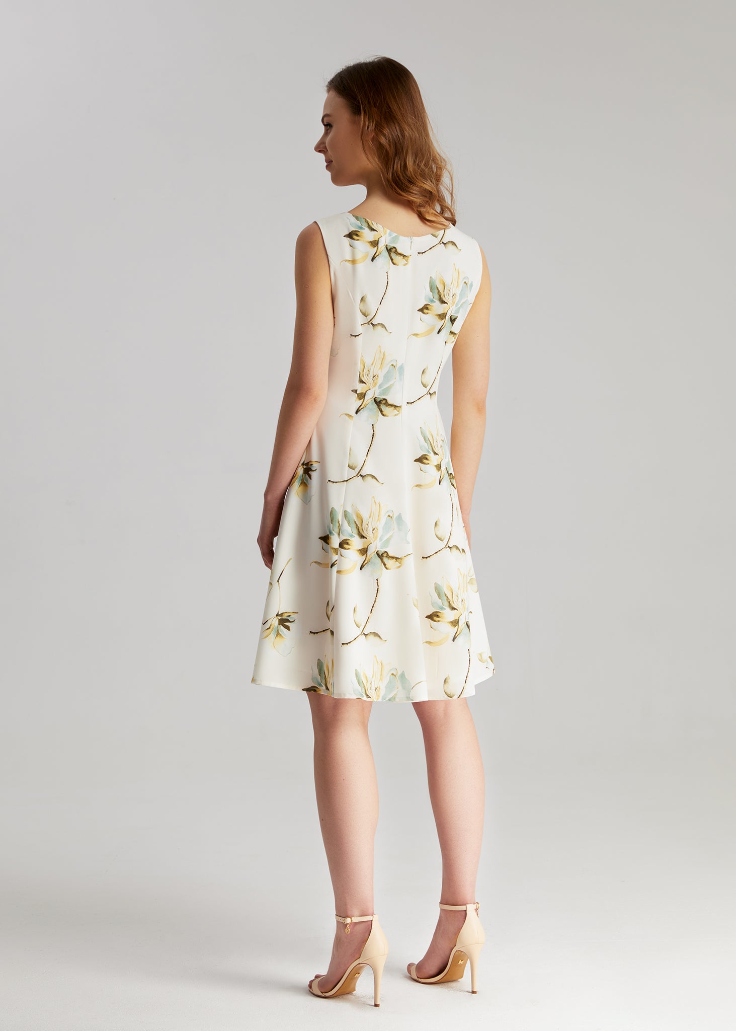 Cut to a wonderfully flattering fit and flare silhouette, it comes in a sleeveless design with a simple crew neckline.